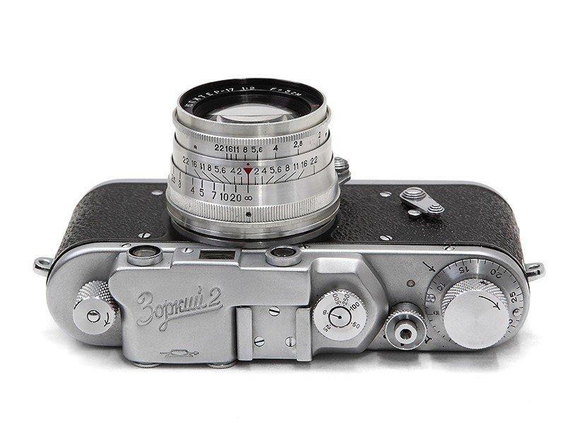 Камера Зоркий-2 с объективом Юпитер-17. Камера укомплектована кофром с длинным носом под соответствующий объектив.
